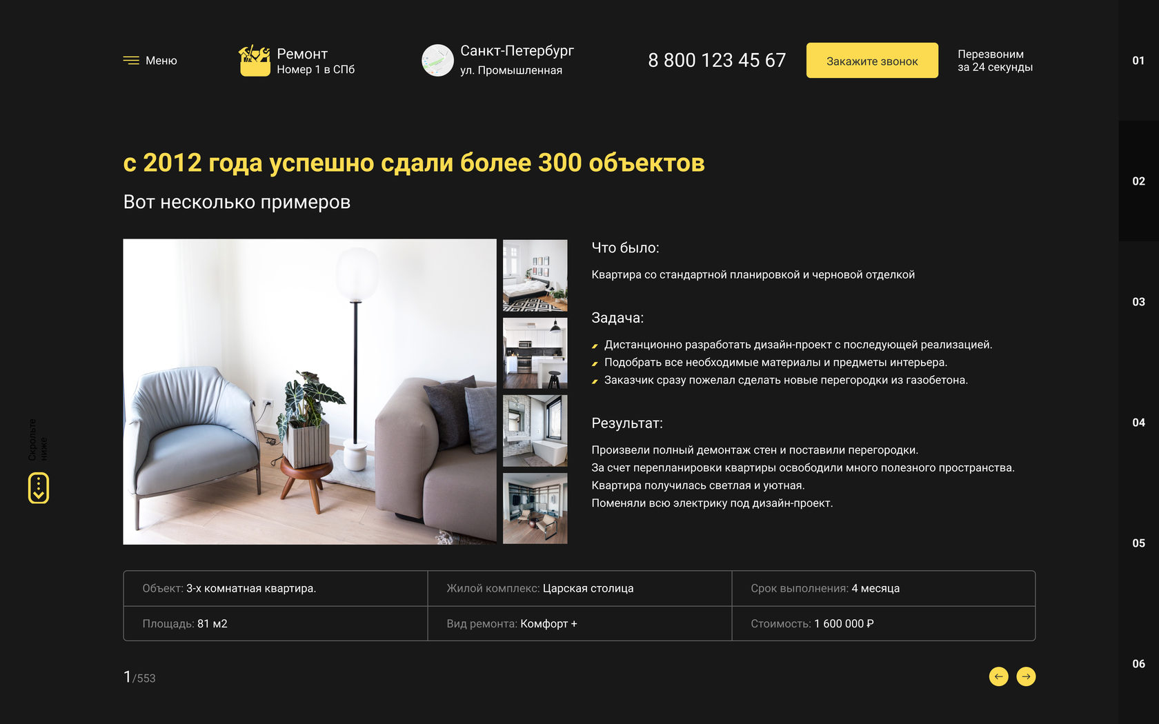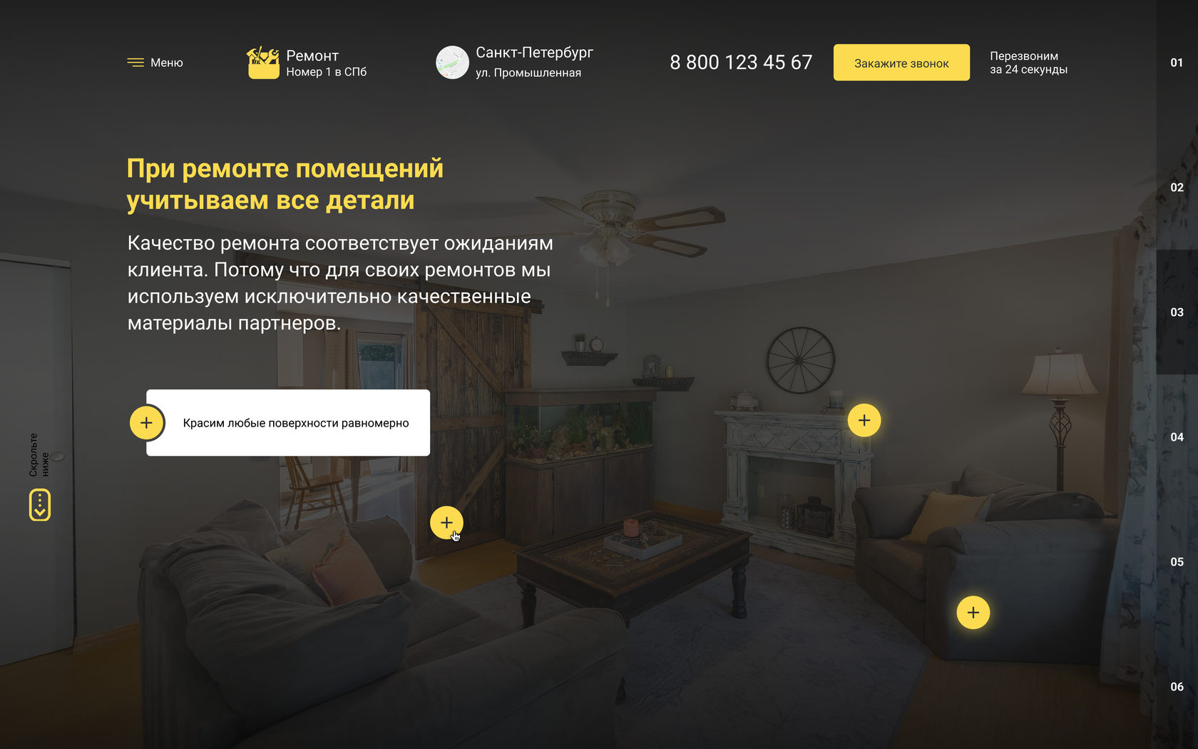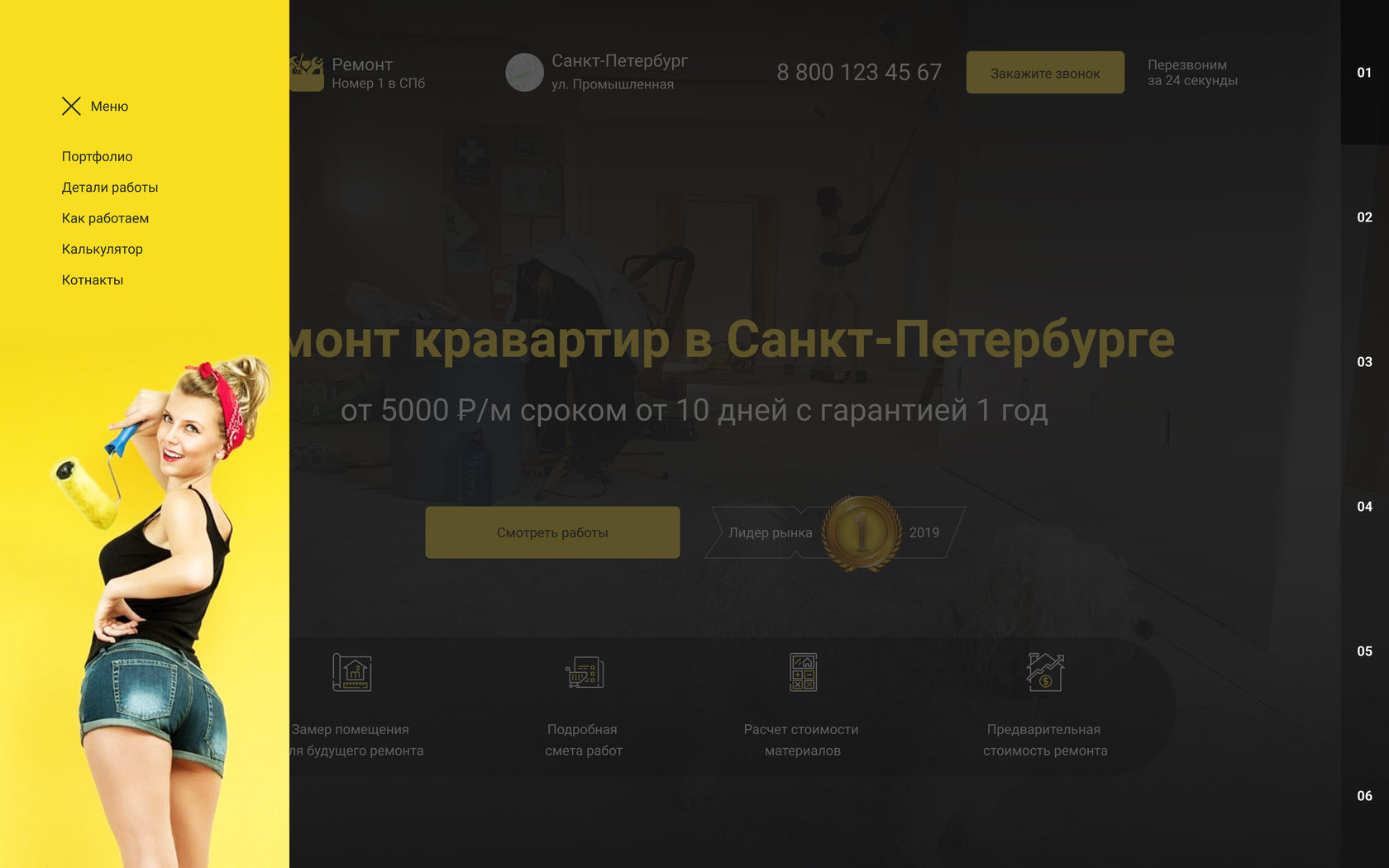 Сайт сделан для компании по ремонту квартир для клиентов с разным уровнем дохода. Через данный сайт вы можете получать заявки на различные виды ремонта от простой комнаты до элитной недвижимости.