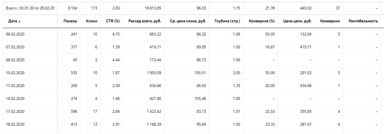 ЗА 8 ДНЕЙ РЕКЛАМНОЙ КОМПАНИИ БЫЛО ПОЛУЧЕНО 20 ЗАЯВОК ЧЕРЕЗ ФОРМУ ОБРАТНОЙ СВЯЗИ, 29 ЗВОНКОВ ИЗ НИХ 11 ЗАЯВОК, ВСЕГО НА РЕКЛАМУ БЫЛО ПОТРАЧЕНО 5689,73 РУБЛЯ.
